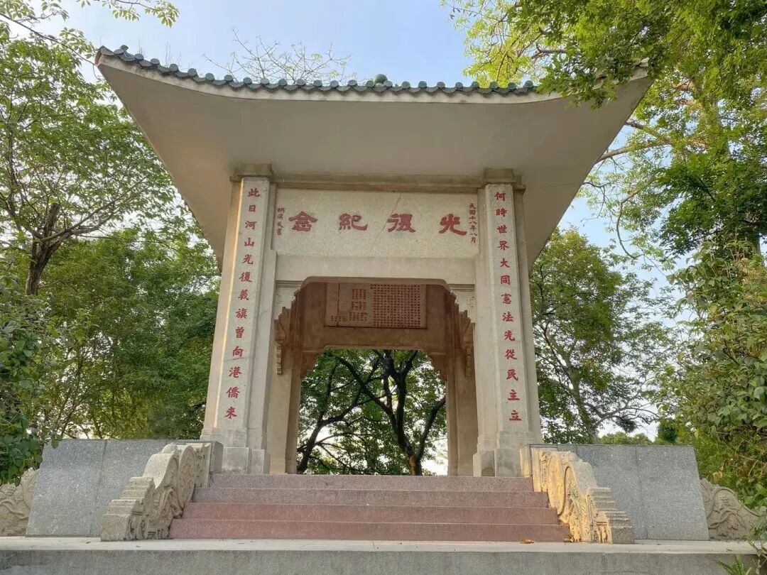 光复纪念亭,是为纪念辛亥革命推翻清政府(时谓“光复河山”),及香港同胞积极捐款支援广东军政府而建。光复纪念亭前竖有一块碑石,记述并赞扬了香港同胞援助革命的爱国事迹。
